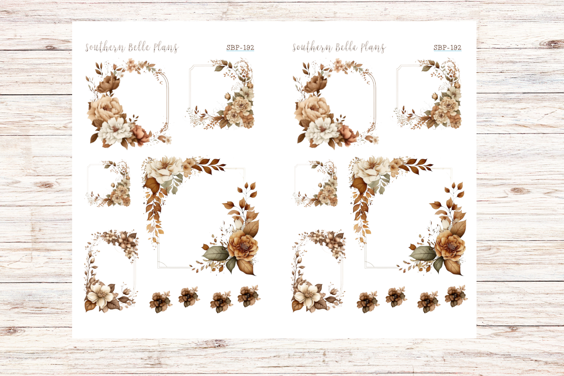 4x6 Transparent Sticker Sheet - Floral - Brown - Flower