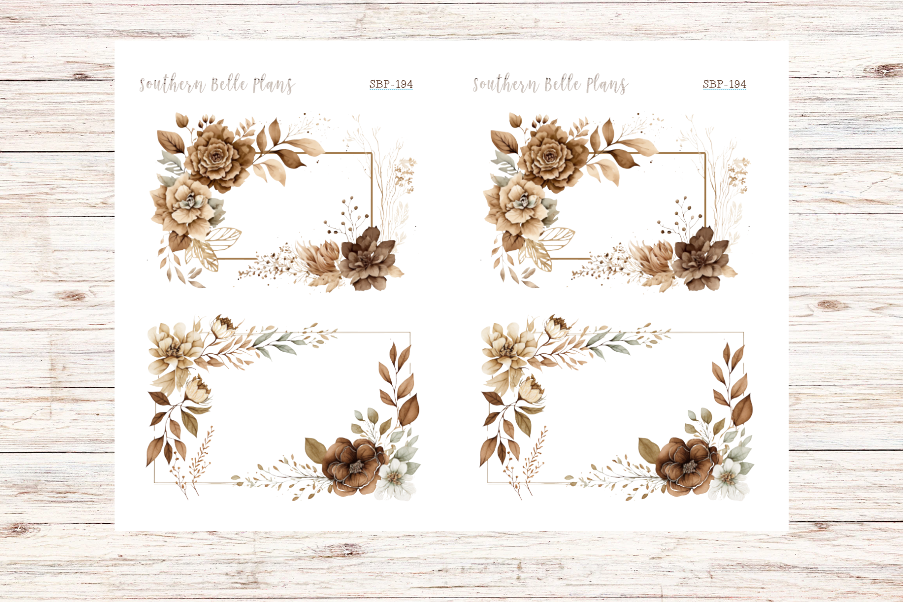 4x6 Transparent Sticker Sheet - Floral - Brown - Flower