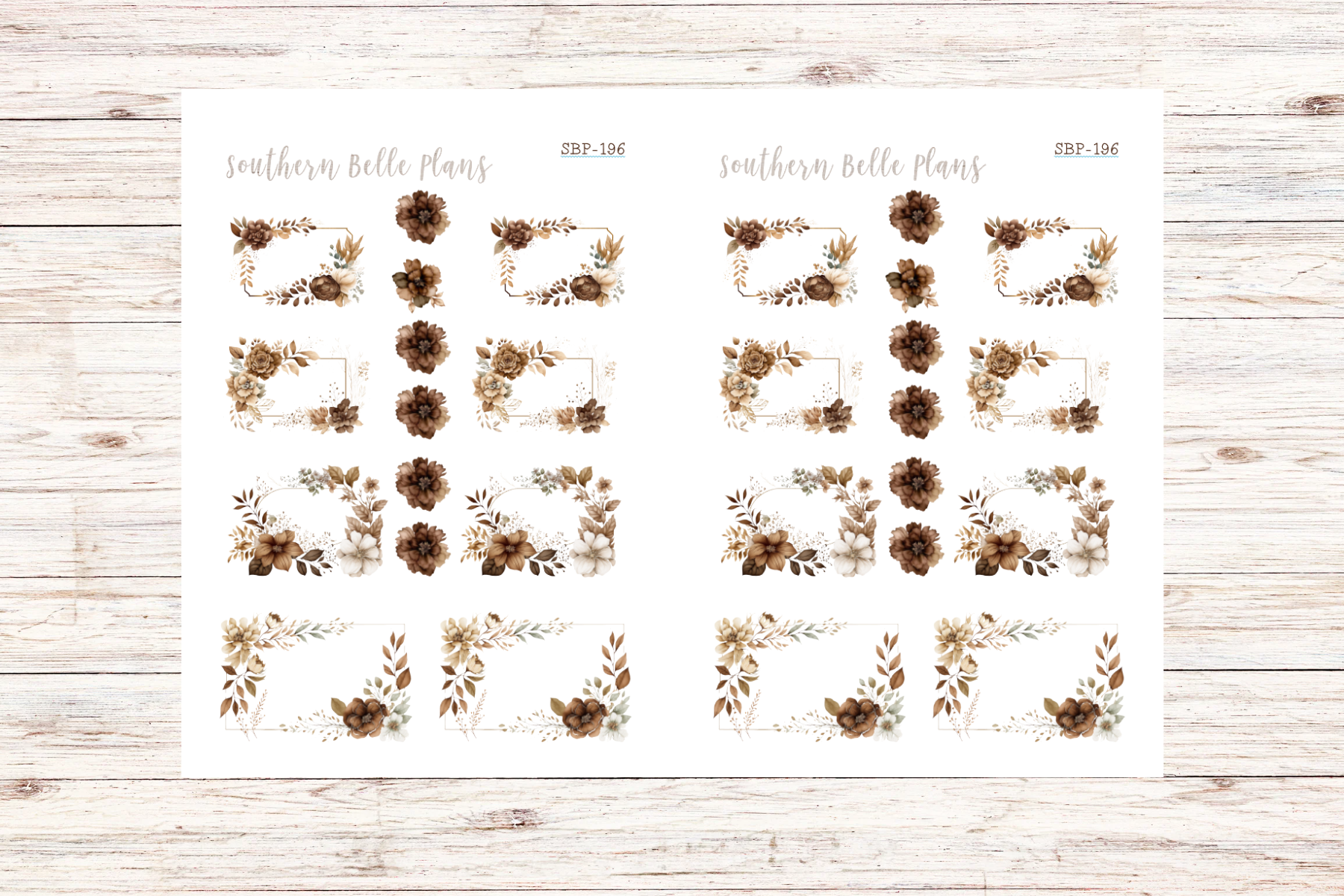 4x6 Transparent Sticker Sheet - Floral - Brown - Flower