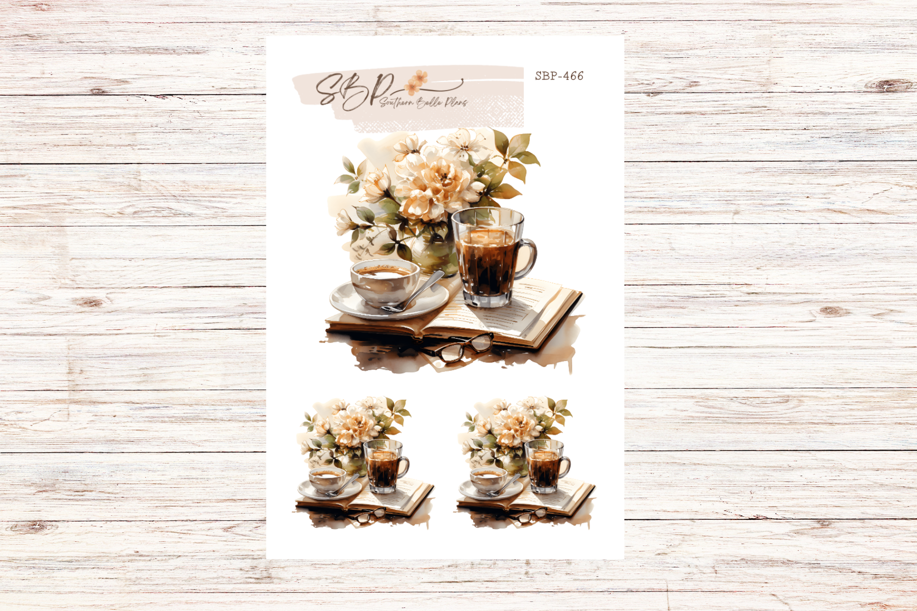 4X6 Transparent Sticker Sheet- Book - Coffee - Floral