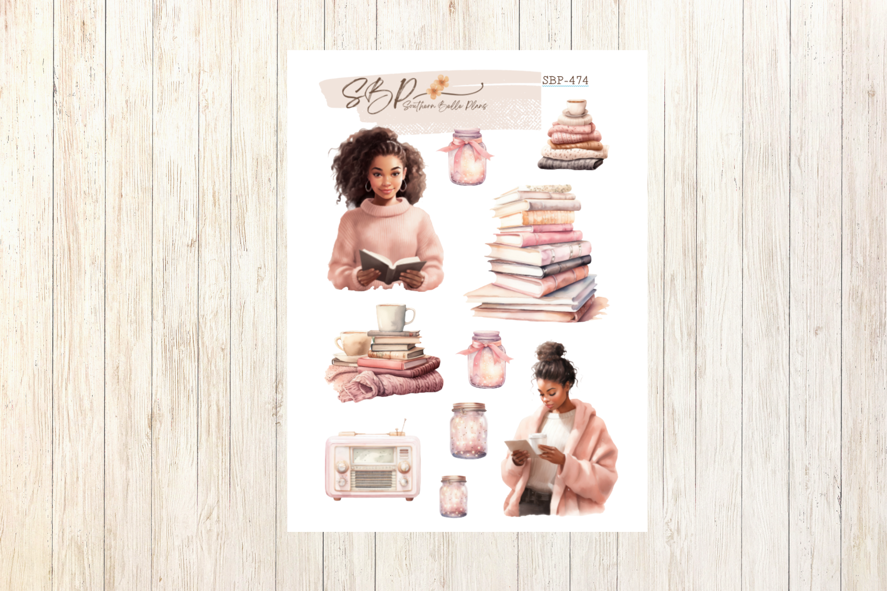 4X6 Transparent Sticker Sheet- Girl - Dark - Pink - Book