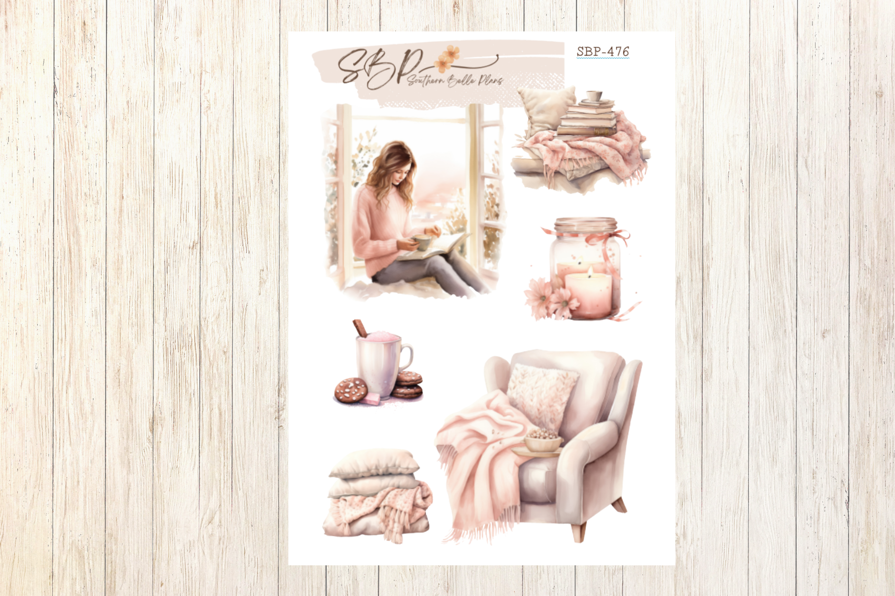 4X6 Transparent Sticker Sheet- Girl - Light - Pink - Book