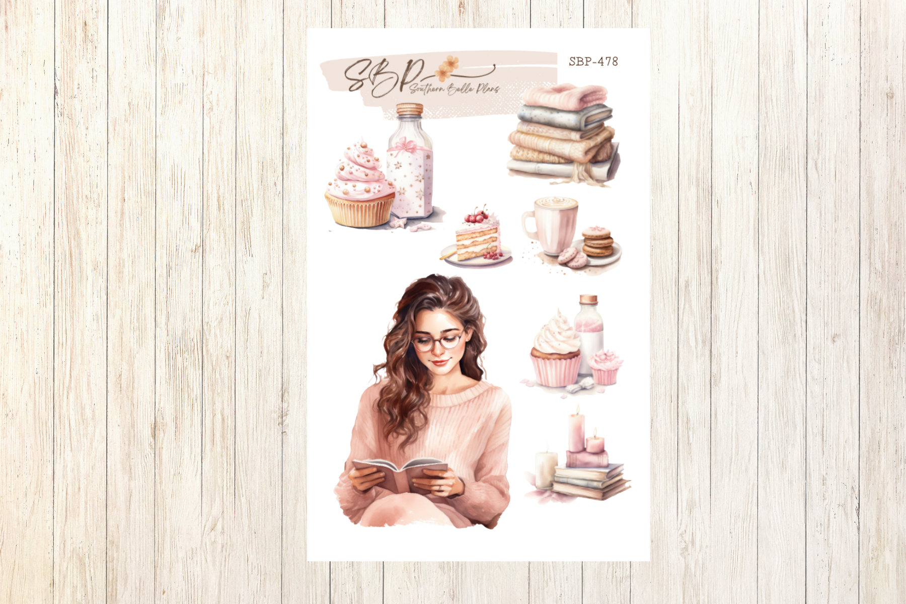 4X6 Transparent Sticker Sheet- Girl - Light - Pink - Book