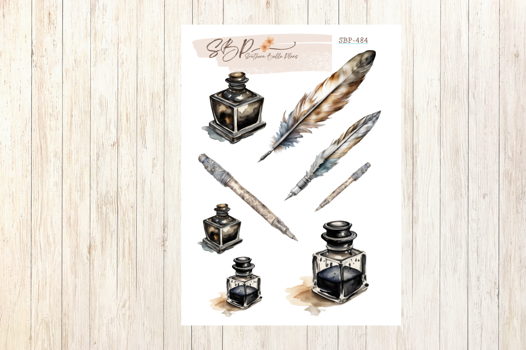 4X6 Transparent Sticker Sheet - Fountain Pen - Ink bottle