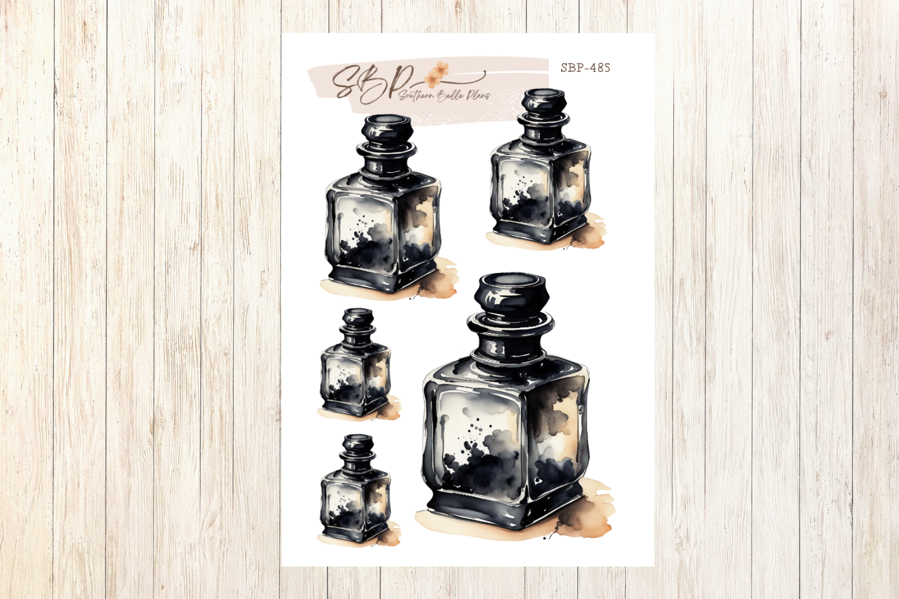 4x6 Transparent Sticker Sheet-Fountain Pen - Ink bottle