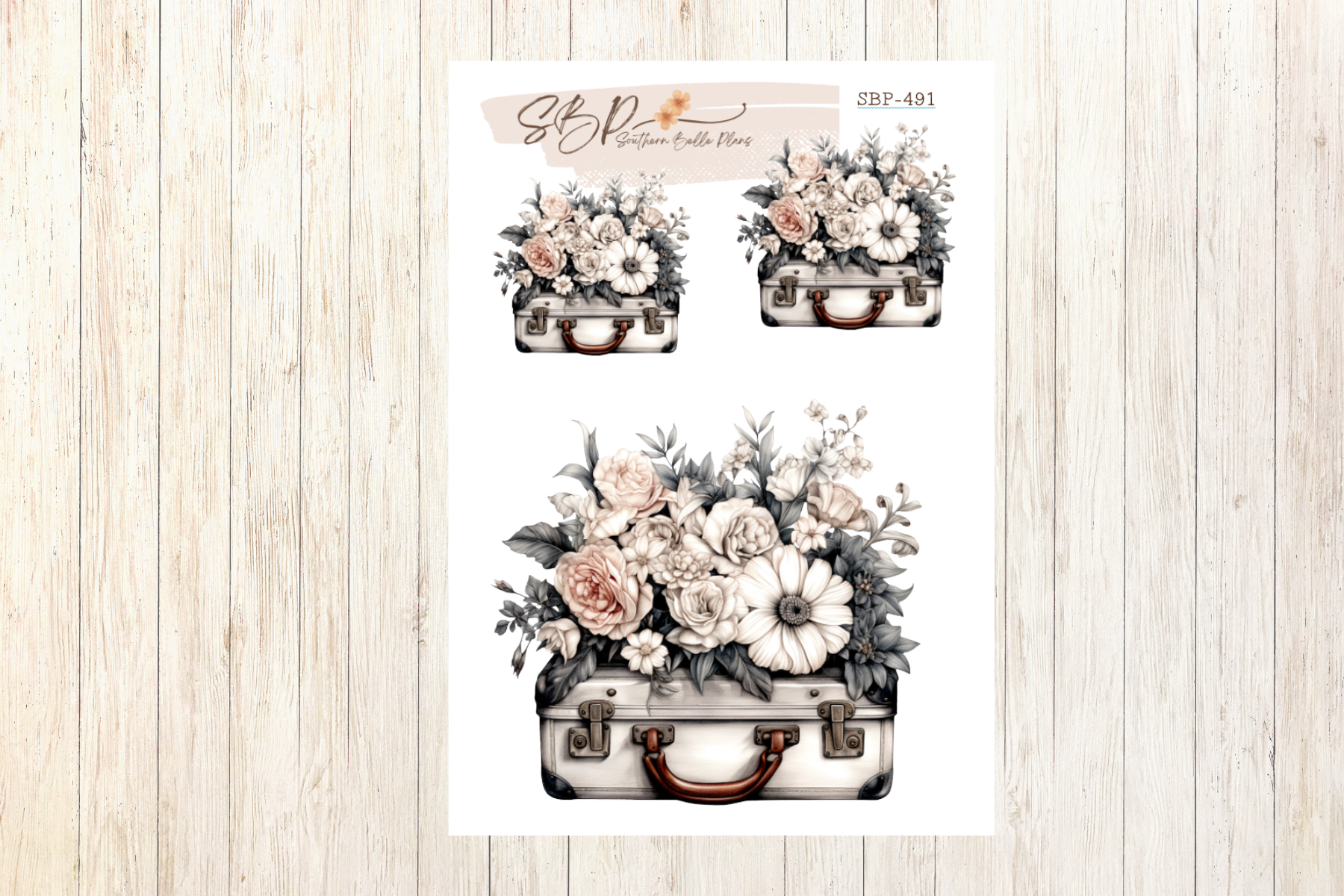 4x6 Transparent Sticker Sheet- Suitcase - Travel - Flower - Floral