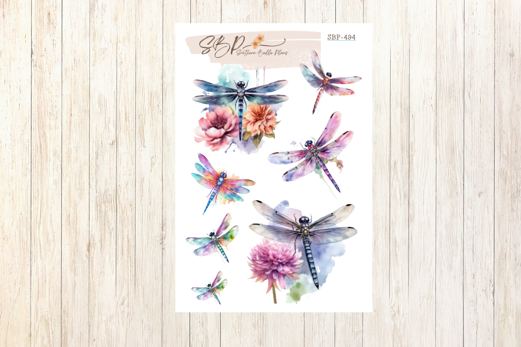 4X6 Transparent Sticker Sheet- Dragon Fly